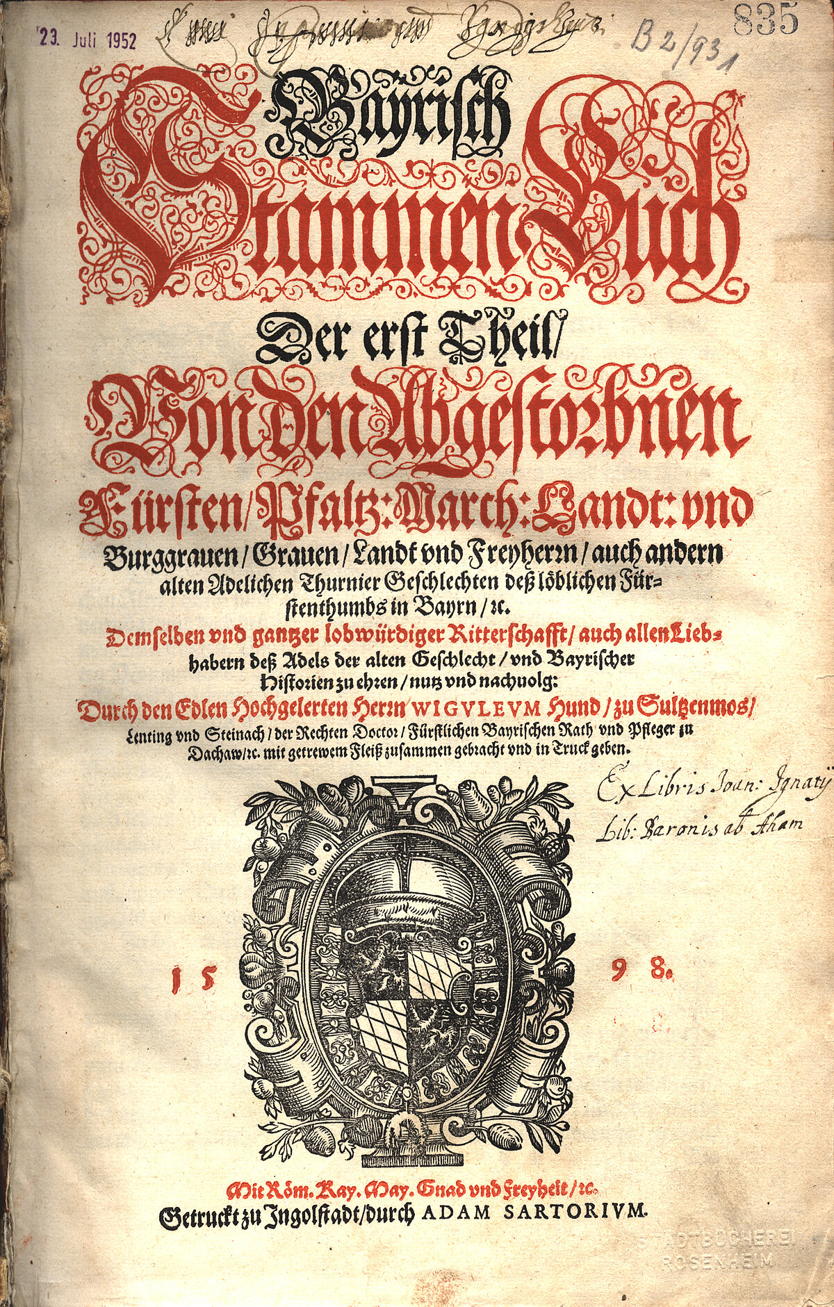 Bayerisch Stammenbuch von Wigulaeus von Hundt, Ingolstadt 1598