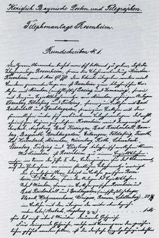 Ab den 1880er Jahren verbreitete sich das Telefon in Bayern. Die ersten Telefonnetze gingen 1882 in Ludwigshafen und 1883 in München in Betrieb. Zehn Jahre später, am 1. Mai 1893, errichtete man im Rosenheimer Stadtpostamt eine erste handbediente Telefonumschaltstelle. Das erste Rosenheimer Telefonnetz zählte 24 Teilnehmeranschlüsse, wobei das Interesse an einem eigenen Telefonanschluss in den folgenden Jahren kontinuierlich zunahm.