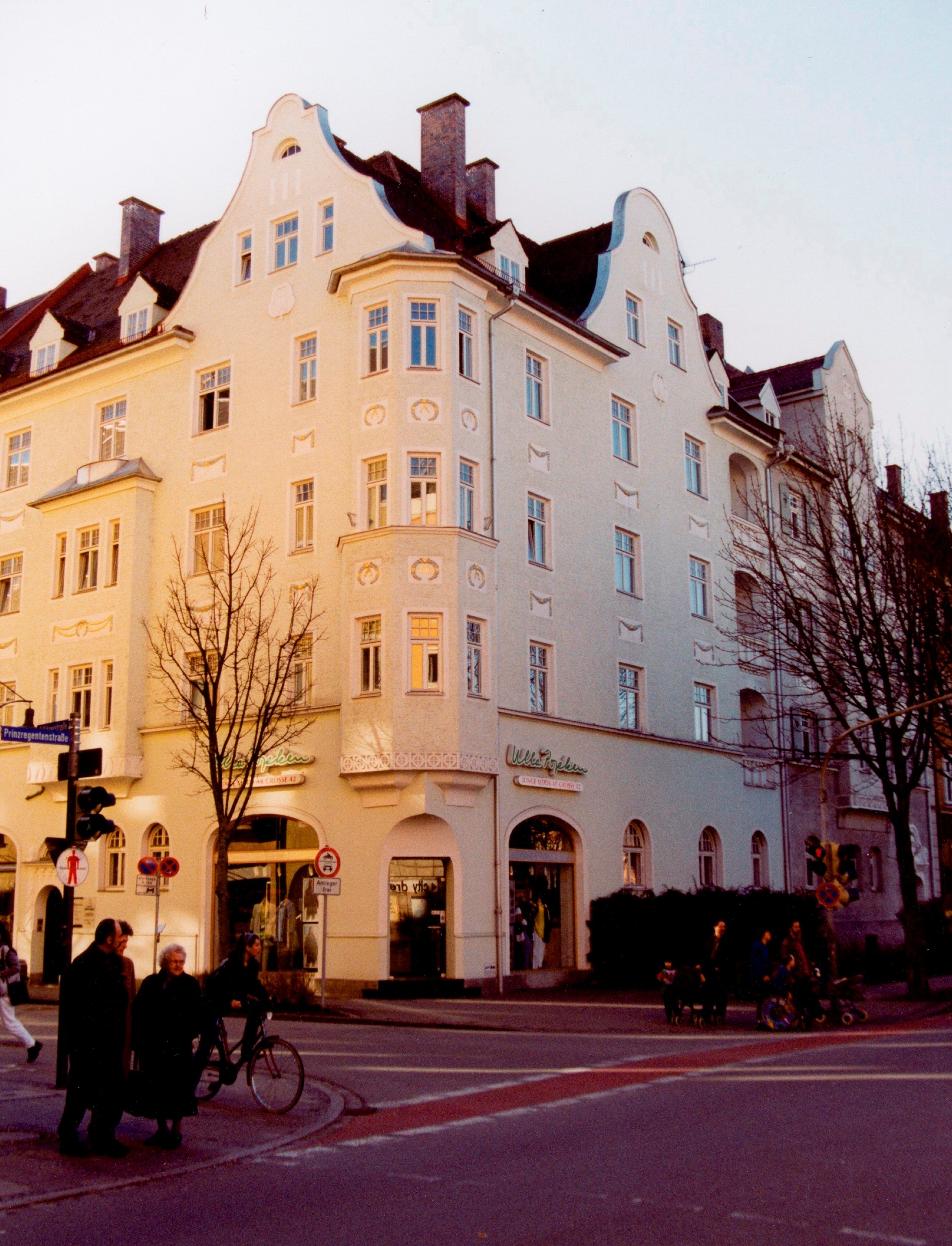 Zwei repräsentative Mietshäuser im späten Jugendstil Münchner Prägung wurden 1910 an der Ecke Prinzregenten/Gillitzerstraße errichtet. Von Emil Schweighart, München, stammt der Entwurf der neuen Stadtpost.