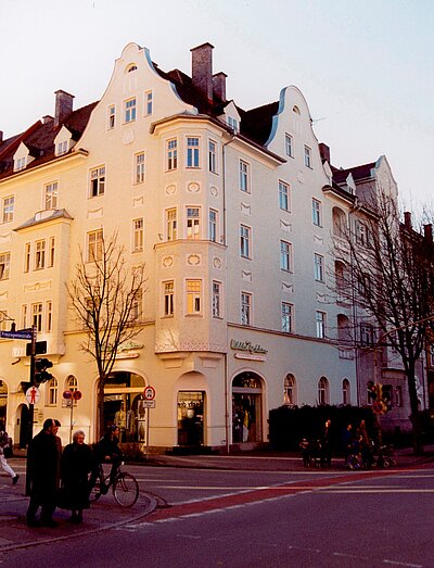 In prominenter Lage am König-Otto-Eck, der schon um 1900 zentralen Kreuzung der Stadt, setzte die elegante Fassade des „Schauer-Hauses" einen wichtigen städtebaulichen Akzent (erbaut 1912/13).