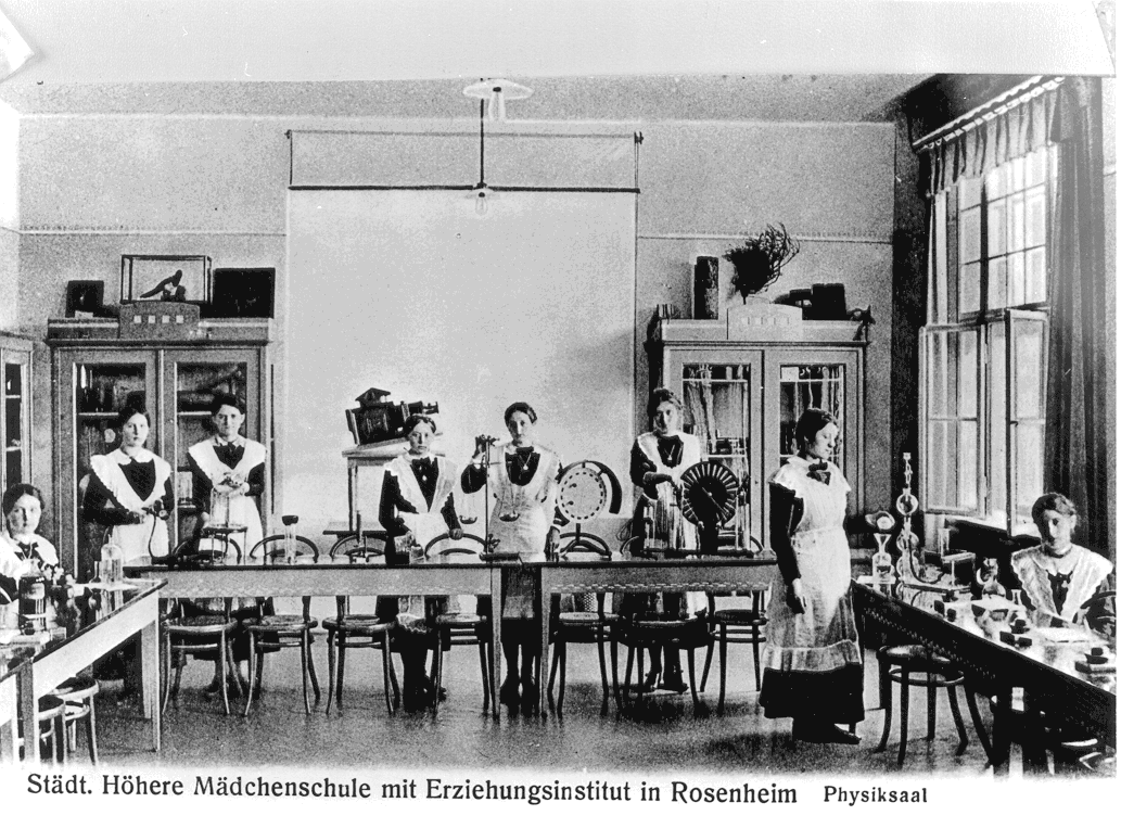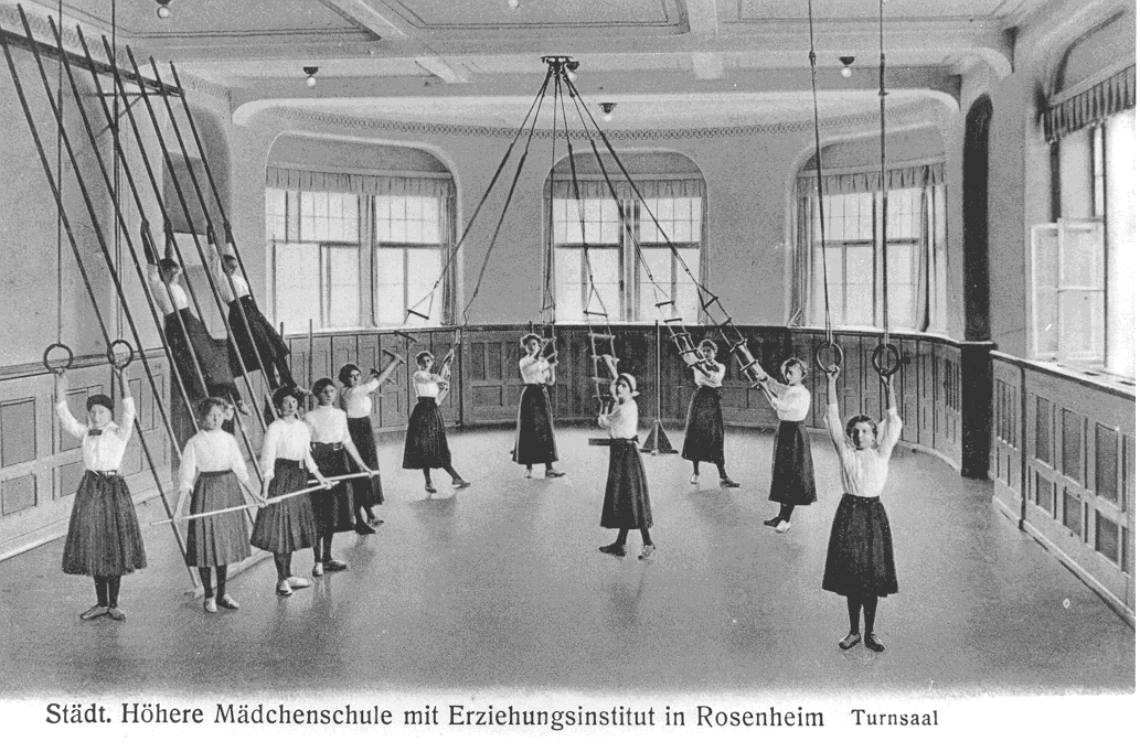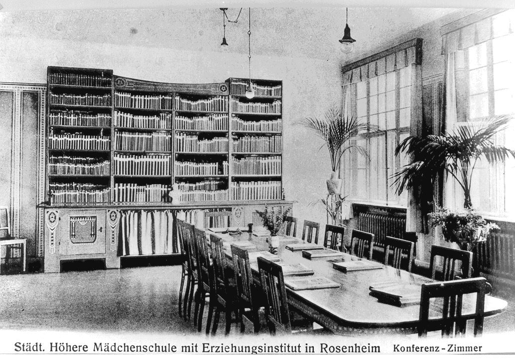 An eine gymnasiale Ausbildung für Mädchen war bis Ende des 19. Jahrhunderts in Rosenheim nicht gedacht. Erst 1890 wurde unter der Leitung der Armen Schulschwestern aus München eine dreiklassige Anstalt im Mädchen-Schulhaus an der Heilig-Geist-Straße eingerichtet.