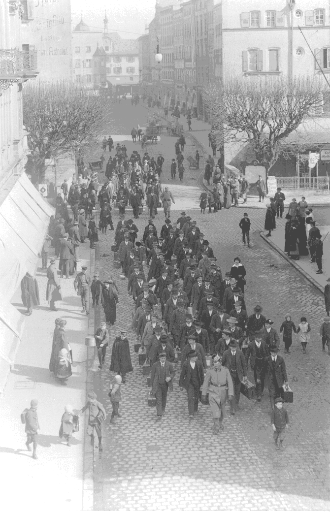 Die Sparkasse sperrte Auszahlungen über 500 Mark. Auf der Loretowiese wurden Pferde aus der Landwirtschaft durch die Musterungskommission beschlagnahmt. Allmählich dämpfte das Geschehen die anfängliche Hurra-Stimmung, vor allem nachdem trotz anfänglicher Siegesmeldungen die Namen der ersten Gefallenen bekannt wurden.