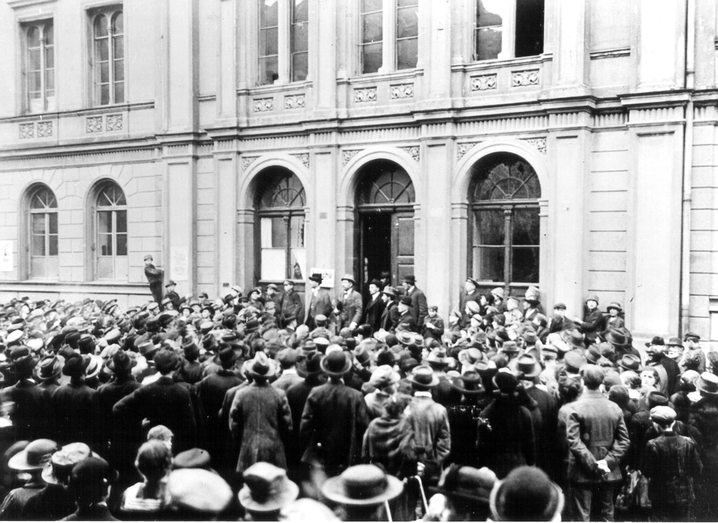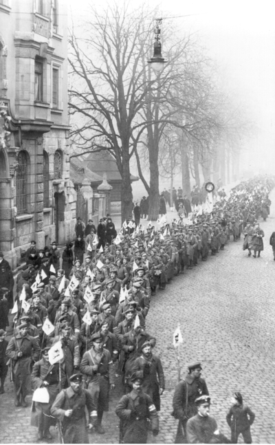 Am 8. November 1918 wurde - nach Münchener Vorbild - ein Volks- und Soldatenrat gebildet. Eine einberufene Volksversammlung auf der Loretowiese legte die Forderungen fest, die anschließend der Verwaltung vorgetragen und ohne Widerstand angenommen wurden.