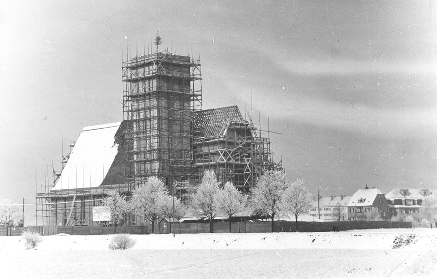 Erst 1926 setzte wieder eine Entwicklung ein - mit der Gründung eines neuen Kirchenbauvereins. Diesmal glückte das Unternehmen, der ausgesuchte, westlich gelegene Bauplatz fand auch die Zustimmung des Ordinariats. So war im November 1928 der Rohbau der Christkönig-Kirche nahezu fertig und am 22. Dezember 1928 konnte das Richtfest stattfinden. Knapp ein Jahr später, am 29. Oktober 1929, folgte die feierliche Einweihung der Kirche durch Kardinal Faulhaber.
