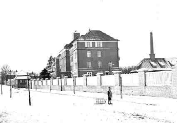 Für 1 Million Reichsmark wurde deshalb das bestehende Gebäude renoviert und vergrößert. Der Bau bestand aus vier Stockwerken mit Ziegeldach und einem Dachreiter-Aufbau, der als Uhrturm diente. Der Vorbau wrude über den Arkaden mit drei Plastiken des Münchener Bildhauers Georg Albertshofer geschmückt, die Hippokrates, den Patron der Ärzte St. Kosmas und einen Kranken darstellten.