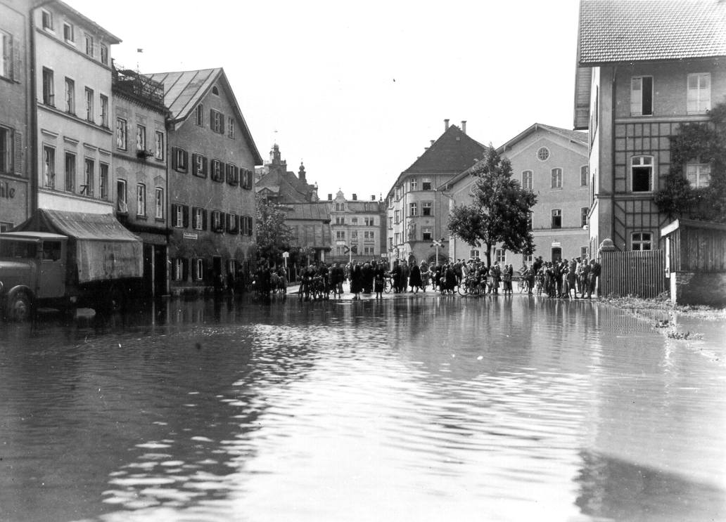 Für über 1.000 Rosenheimer mussten Notquartiere beispielsweise in der Mädchenschule an der Heilig-Geist-Straße geschaffen werden. Die Situation verschlimmerte sich drastisch, als bei der Gastwirtschaft "Pruttinger Hof" auf einer Länge von 10 Metern der Mangfalldamm brach. Kurz darauf hielt auch der linksseitige Damm dem Druck nicht mehr Stand. Vor allem die Molkerei Gervais mit modernsten Maschinen, die großen Lebensmittellager der BayWa mit Reisvorräten für die Wehrmacht und das städtische Gaswerk waren stark betroffen.