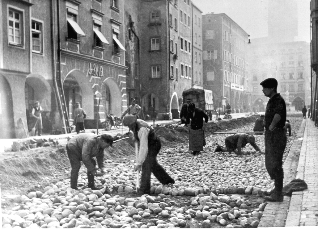Die Kriegsgefangenen wurden aber auch zum Straßen- und Wegebau und anderen gemeindlichen Aufgaben eingesetzt. Im Sommer 1940 wurde die Heilig-Geist-Straße von französischen Kriegsgefangenen neu gepflastert, eine Praxis, die auch schon im 1. Weltkrieg zum Tragen gekommen war.