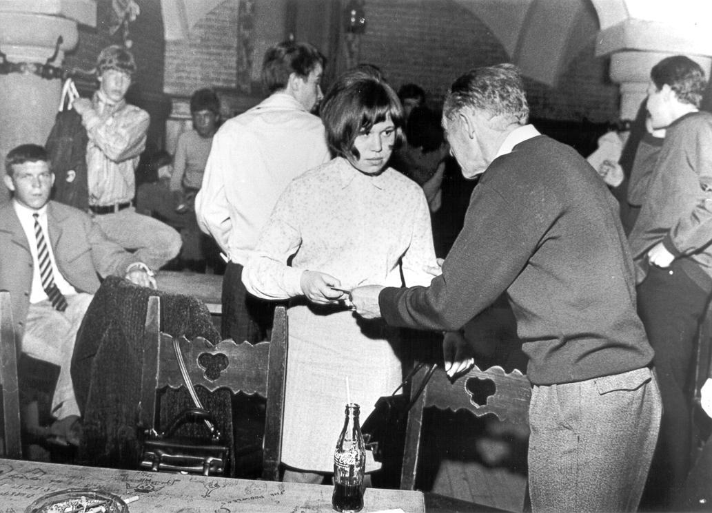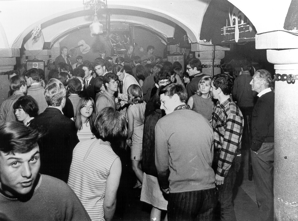 "Eintrittskarten gibt es nicht." Der Jüngling an der Kasse drückt dem Besucher einen grünen Stempel auf den Handrücken. Das kostet zwei Mark (vor neun Uhr sogar fünfzehn Pfennig mehr). Dann sind wir mitten im Gewühl. Im ehemaligen gutbürgerlichen Ratskeller amüsiert sich Rosenheims Jugend unter 19 Jahren.