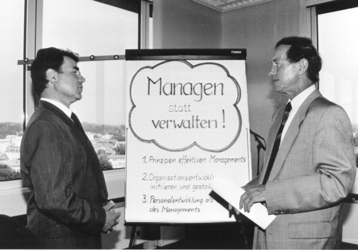Neu eingeführt wurde auch das Verbesserungsvorschlagswesen. Bis zu 10.000 Mark als Höchstprämie konnten die Mitarbeiter der Stadt für pfiffige, kosteneinsparende Vorschläge erhalten. Ein umfangreiches Schulungsprogramm sollte jede Führungskraft in die Lage versetzen, moderne Projekt-Management-Methoden in die Praxis umzusetzen.
