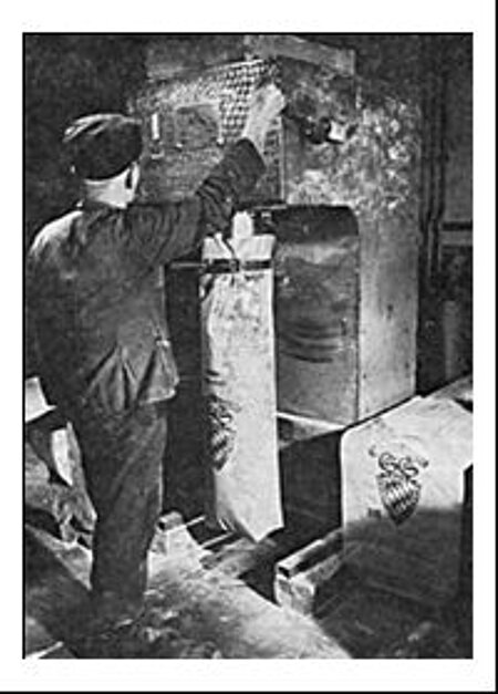 So wurde in Rosenheim bis zur Stillegung der Saline nach der alten Methode das Salz gewonnen. Die Sole lief in eine der sechs (nach Luftangriffen im 2. Weltkrieg nur noch fünf) rechteckigen Sudpfannen ein, die zuerst mit Holz-, später mit Torf-, zuletzt mit Kohlefeuerung erhitzt wurden. Das auskristallisierte Salz sank auf den Pfannenboden und mußte - ursprünglich von Hand später maschinell - mit sog. Schrappern aus der Pfanne gezogen werden. Es wurde dann in die bereitgestellten Holzloren gekippt und zu den Dörrherden gebracht. Anschließend gelang das Salz über Schüttelsiebe und Walzen zur Absackung.
