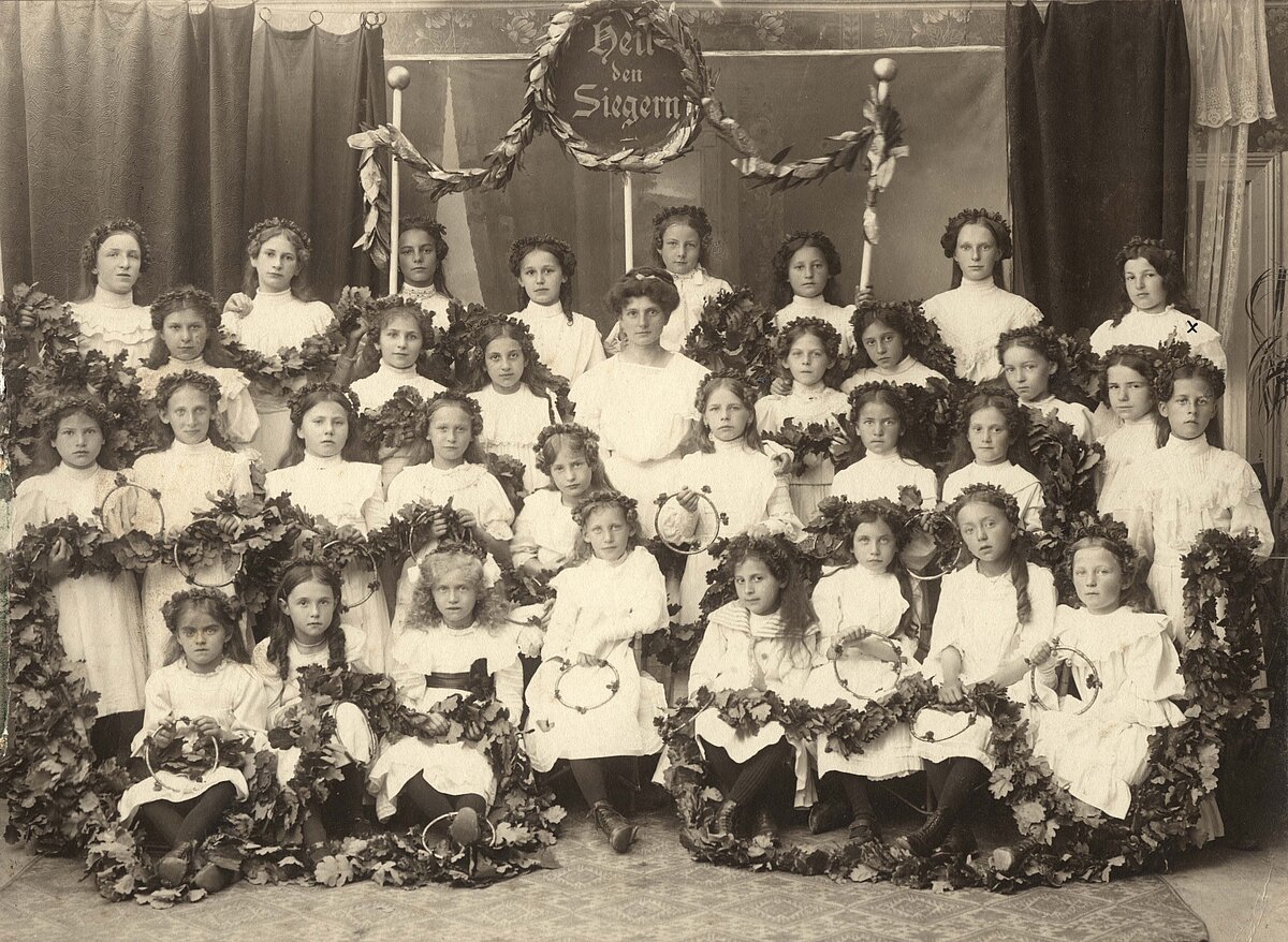 Die Ehrenjungfrauen beim 50-jährigen Stiftungsfest des Turnvereins 1860 Rosenheim im Jahr 1910