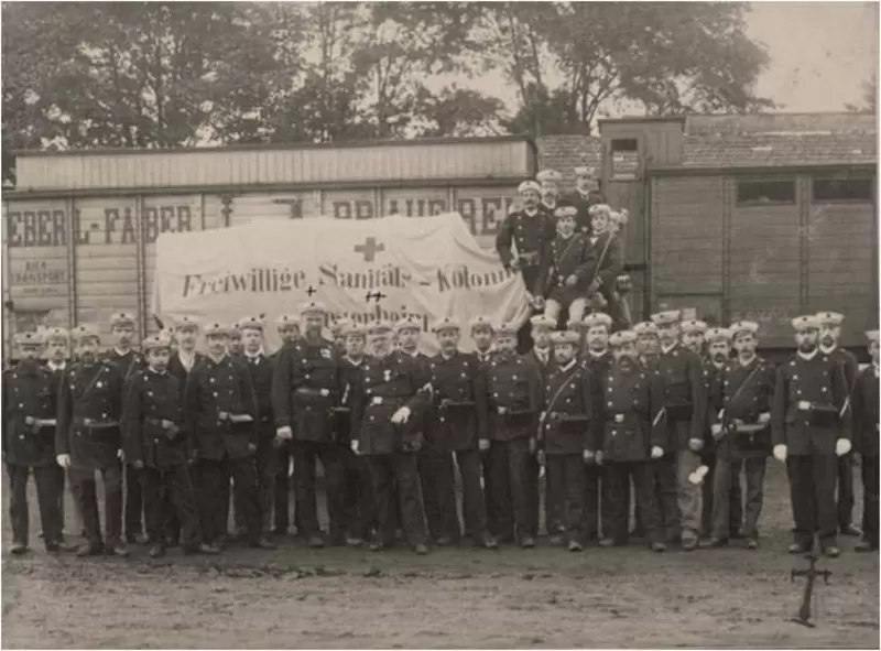 Der Schweizer Henry Dunant gilt als Begründer der internationalen Rotkreuz-Bewegung. In Bayern entstand in den 1860er Jahren der „Landes-Hilfs-Verein“, der ebenfalls das Rote Kreuz als Schutzsymbol verwendete. Als Untergliederung dieses Vereins wurden in zahlreichen Städten sogenannte Freiwillige Sanitätskolonnen gegründet. Die Rosenheimer Sanitätskolonne formierte sich im Oktober 1892. Die Kolonnenführung übernahm der Hauptmann Martin Ebersberger;